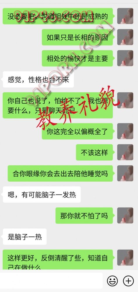 不过在跟她的聊天中发现了她的信号和给的机会,幸好被我察觉。然后抓住她的信号和心理弱点进行强调,把她的顾虑打消,让她对接受跟一个没有眼缘的人继续下去。
