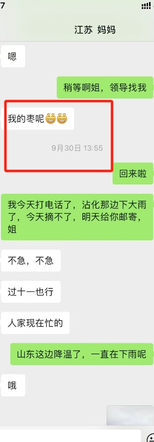 江苏妈妈吃了我邮寄的冬枣,还跟我要,要了两次了,今天再邮寄些吧。这个案例就当我奉献了!